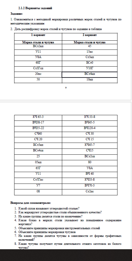 Необходимо выполнить расшифровку чугуна и стали, практическая работа №1, вариант 2, полностью,  ответить на контрольные вопросы, прикрепит выполненное задание.